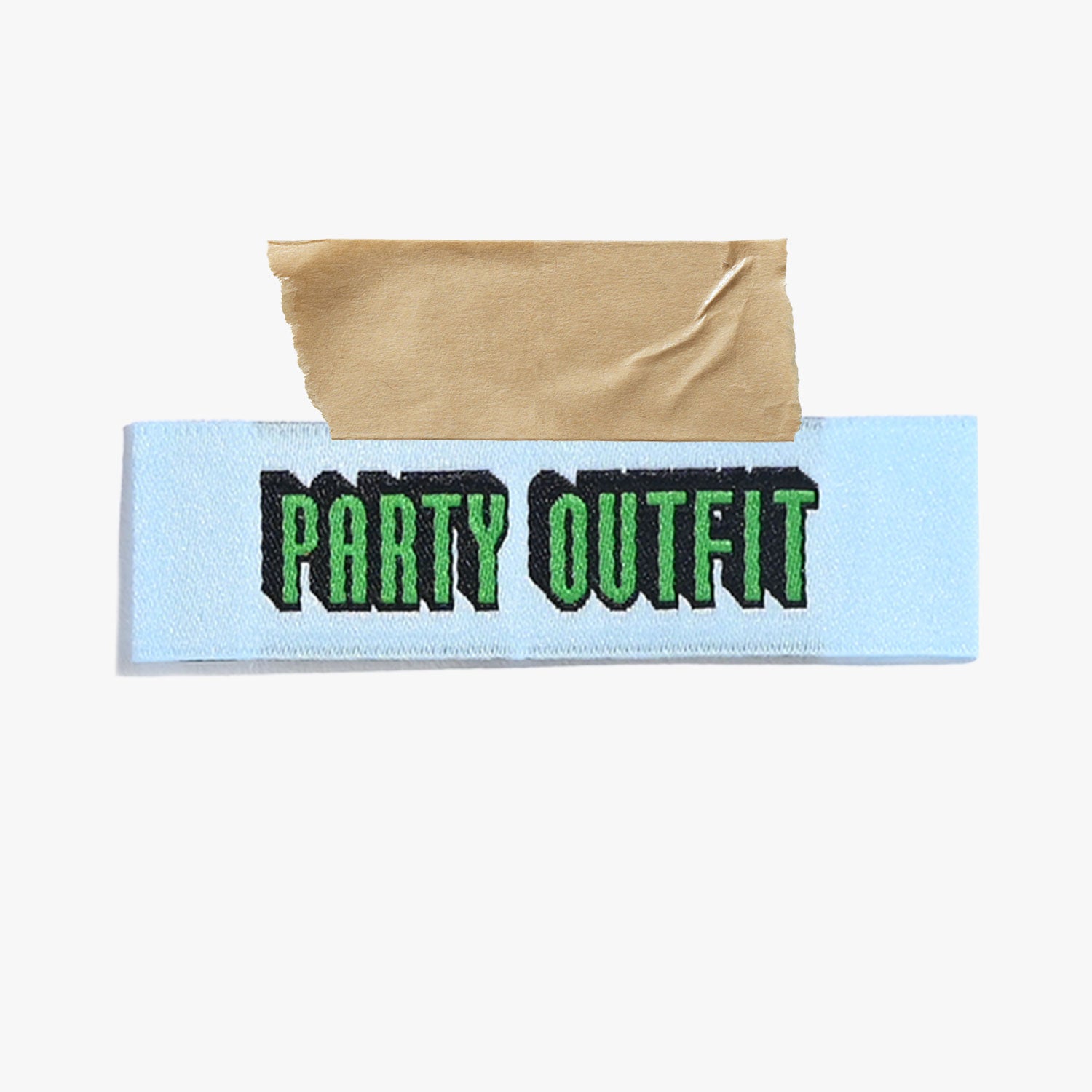 End fold labels are ideally sewn onto the garment (either inside or displayed visibly) by top stitching each end.