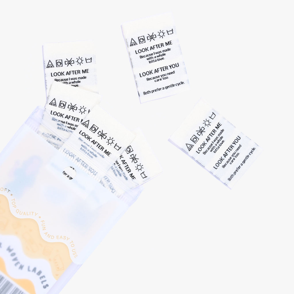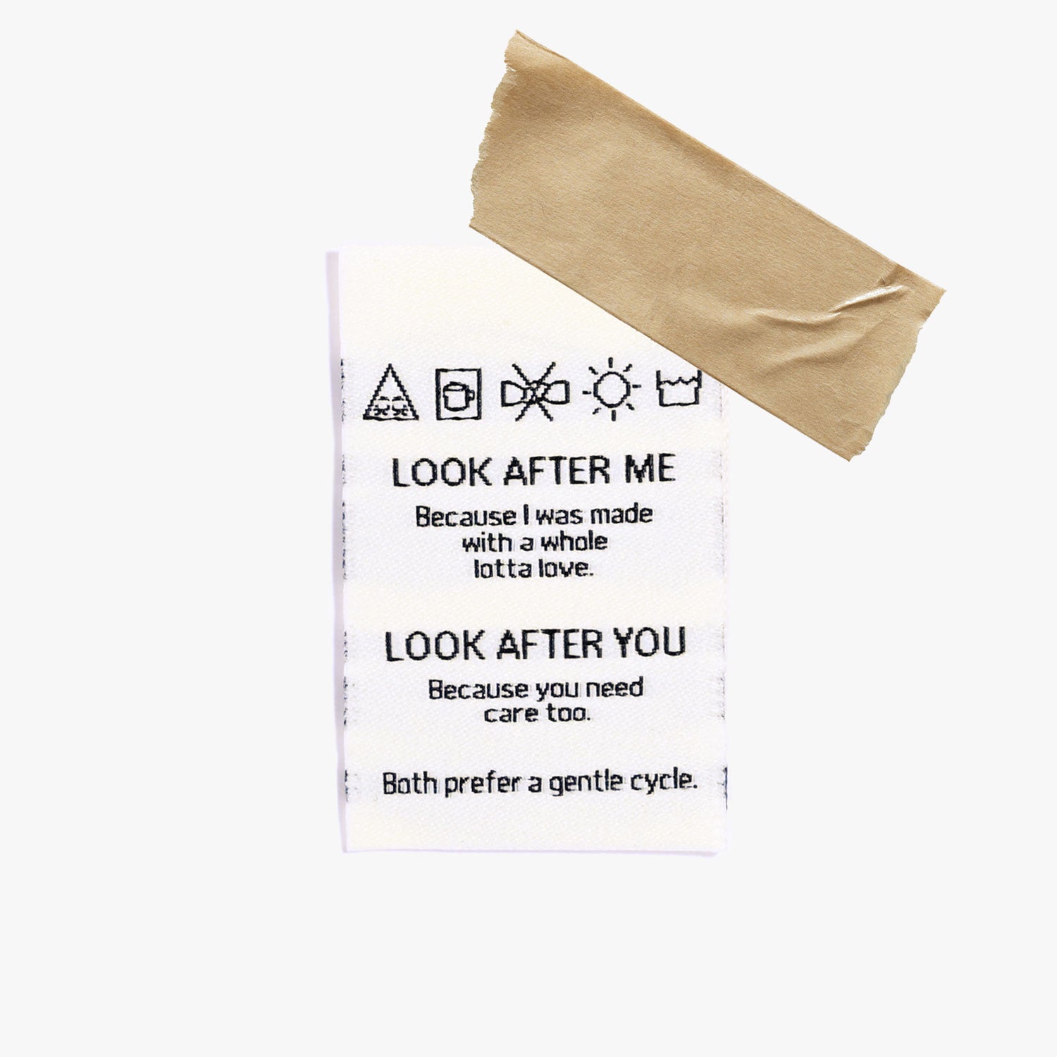 End fold labels are ideally sewn onto the garment (either inside or displayed visibly) by top stitching each end.