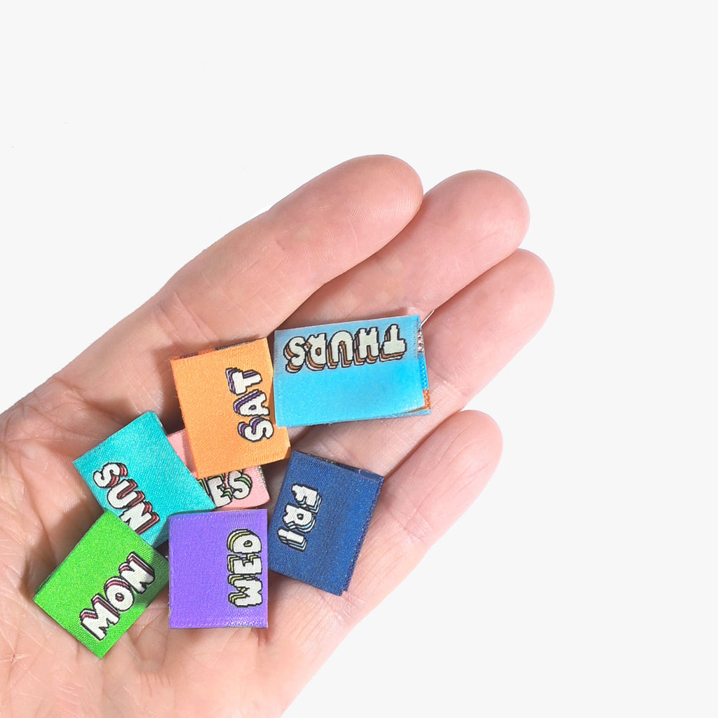 Do your daily clothing staples need some cute day-of-the-week reminders? You bet they do! Presenting our most fun and colourful label release yet... Mon 2 Sun  🌈