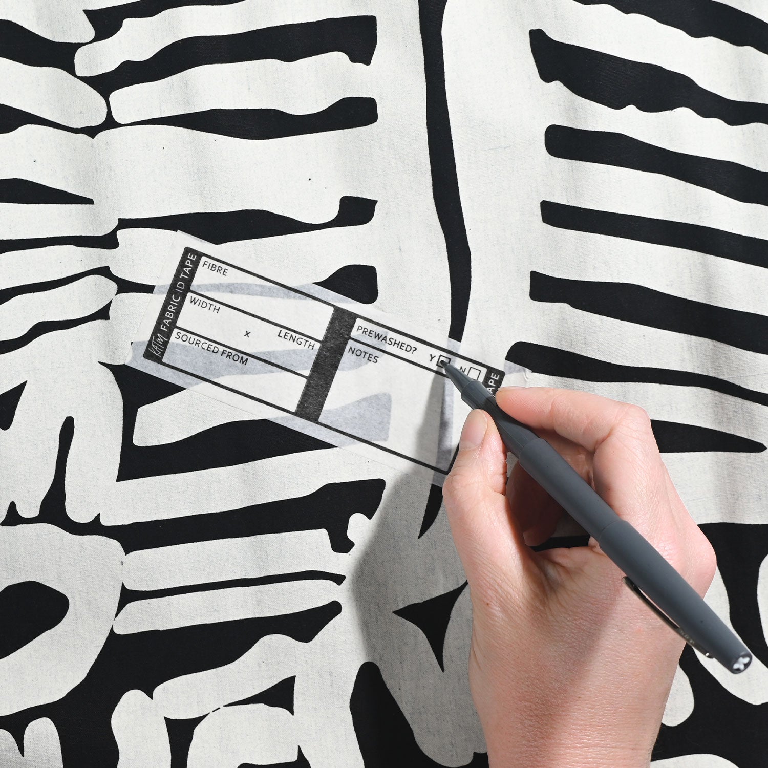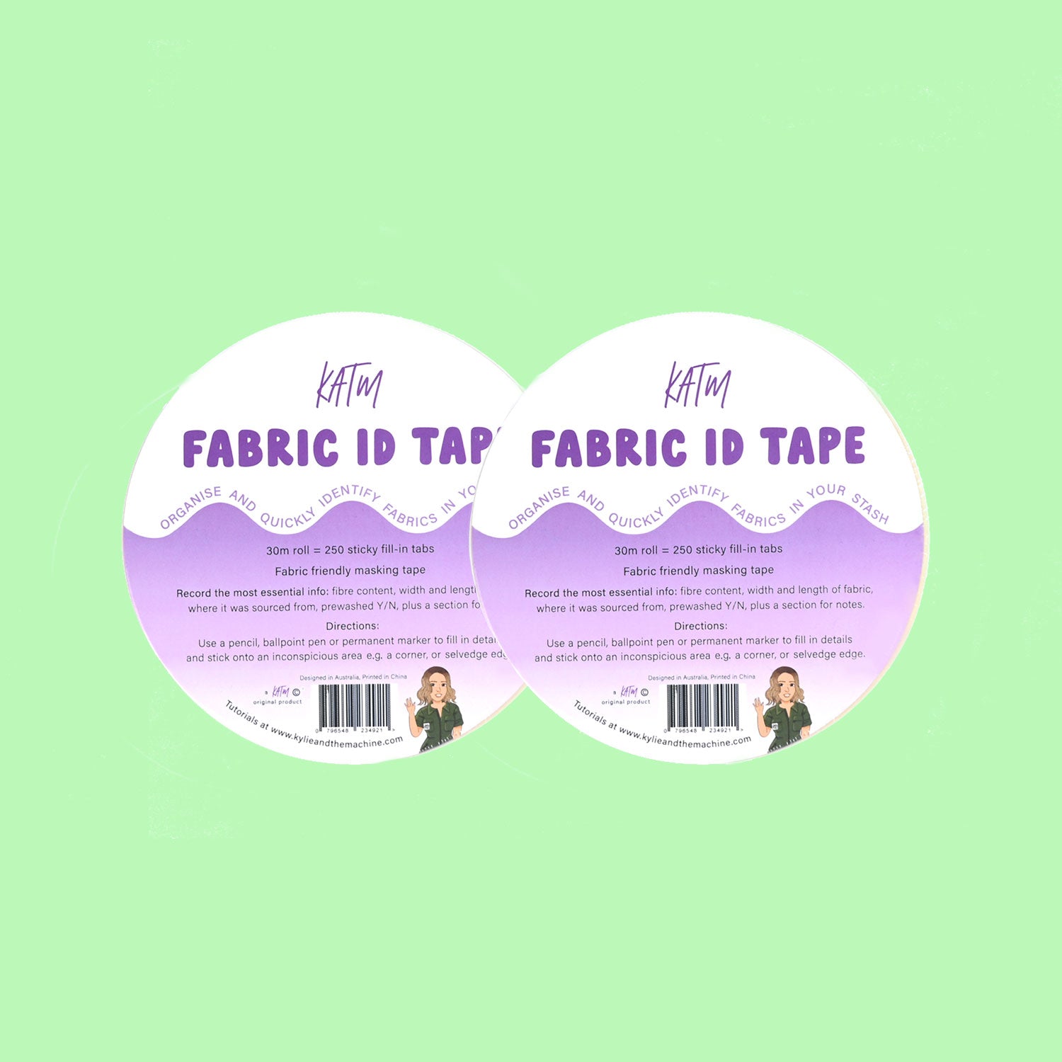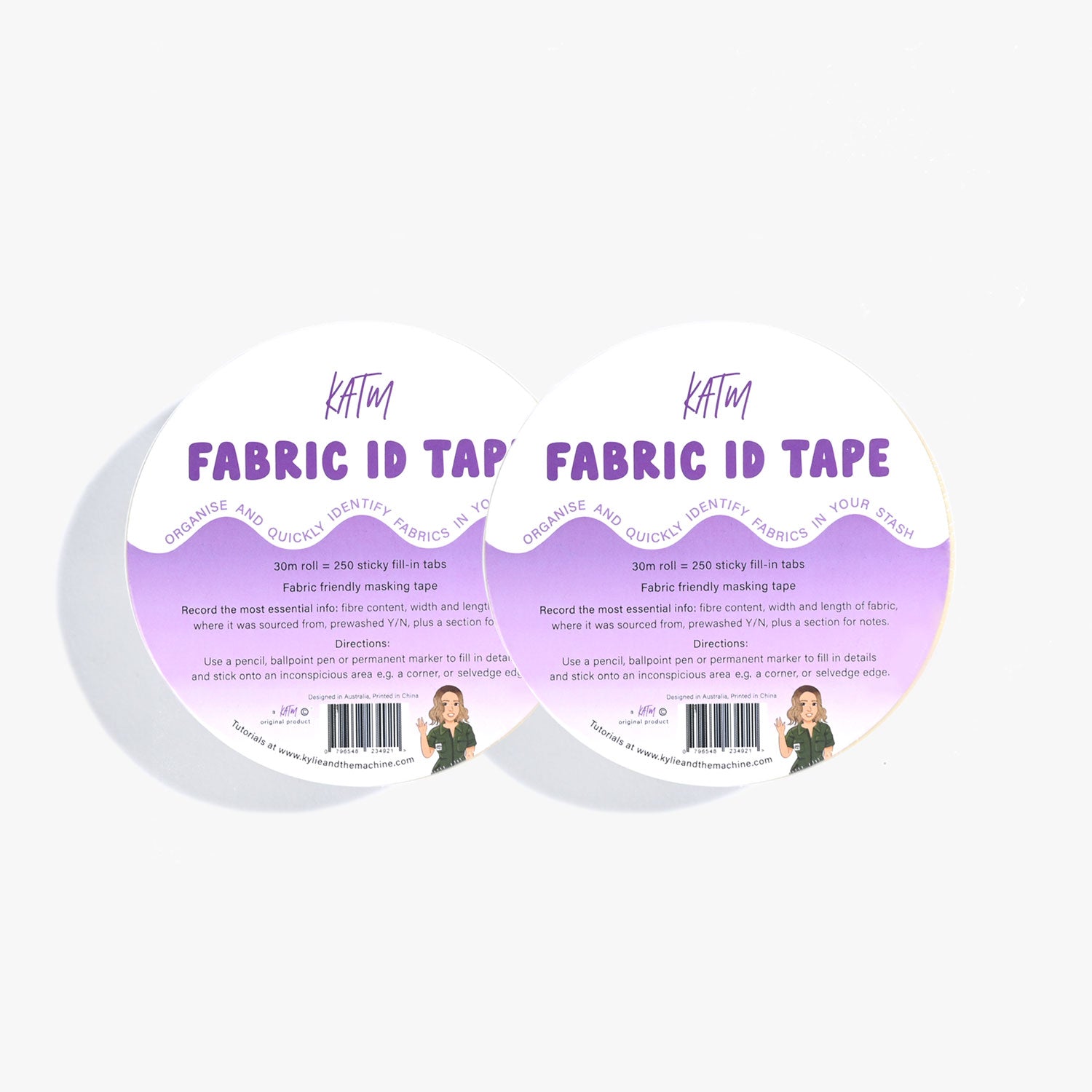 Kylie has designed the ultimate sewing room friend - our KATM Fabric ID Tape is here for all your stash-organising needs. You'll never have to wonder 'have I already pre-washed this?' or 'what fibre is this fabric?' ever again...